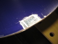 研磨しっぱなしですと見た目も悪いので、保護も兼ねてカーボン調シートを張ります。